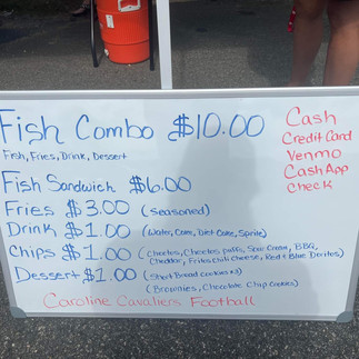 Our JV & Varsity teams worked really hard washing cars. We had a line in the parking lot for car washes and we sold out of all the Fish we had. It was a great day. Thank you to all our Community for showing up and supporting our Local high school football. We appreciate each and everyone of you.